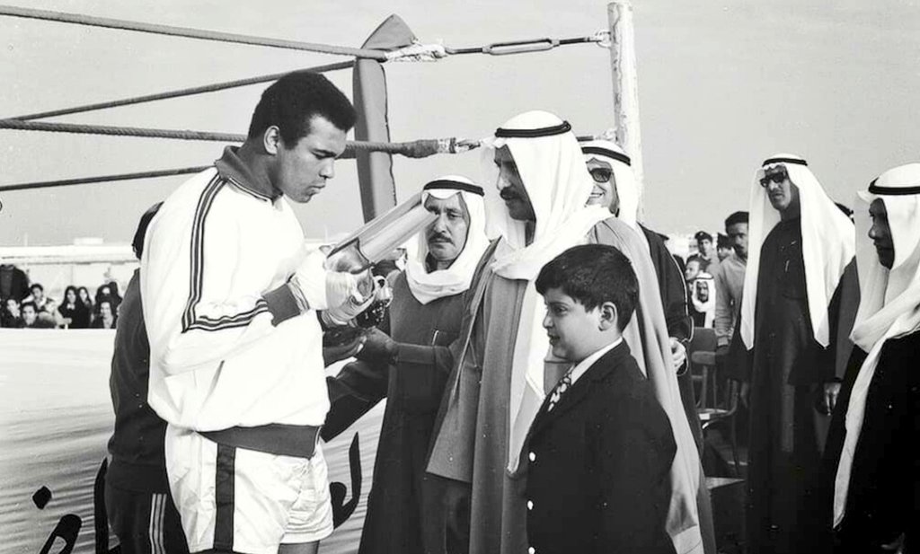 In 1972, Mohammed Ali made a historic visit to Kuwait that captured the attention of the country. During his visit, Ali was given a hero's welcome by the people of Kuwait. He also participated in a number of events and activities, including an exhibition boxing match at Al-Arabi boxing ring, and an Interview he did on Kuwait television with Abdulrahman Al-najjar presenting.